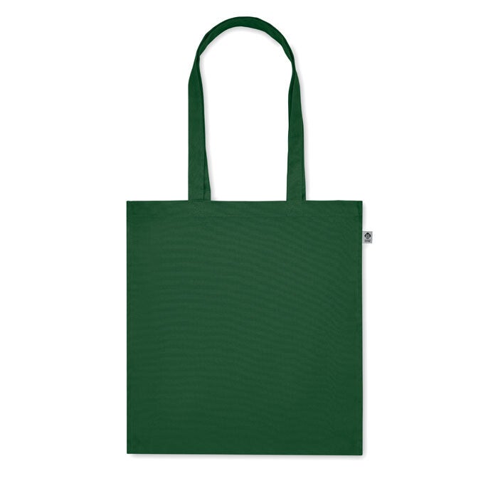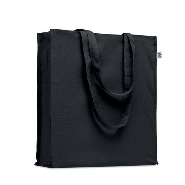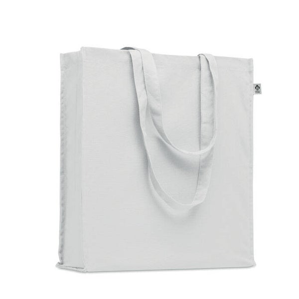 Boodschappentas van organisch katoen met lange hengsels en zijvouw. 220 gr/m².